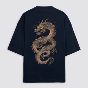 The oversized silhouette offers a relaxed, draped fit that complements all body types, making it perfect for layering or wearing solo. A striking, intricately detailed dragon graphic dominates the back (or front, depending on your design), symbolizing power, resilience, and transformation. Paired with subtle distressed accents or minimalist branding (if applicable), this piece bridges ancient legend with modern rebellion.